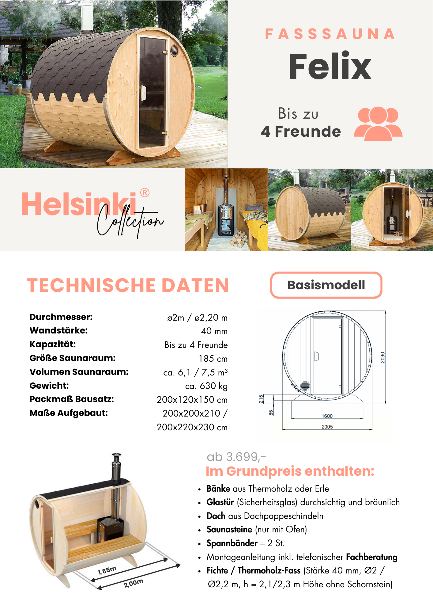 Konfiguriere hier deine Fasssauna aus der Helsinki Collection: